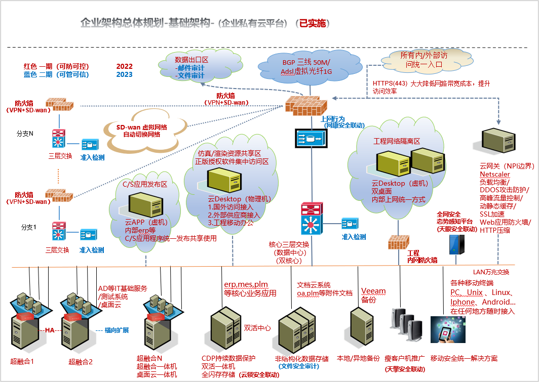 1)2節(jié)點(diǎn)雙活數(shù)據(jù)中心承載集團(tuán)所有工廠集團(tuán)共享系統(tǒng): oa,hr,bi,erp,plm,mdm,分布式file(深圳托管機(jī)房)