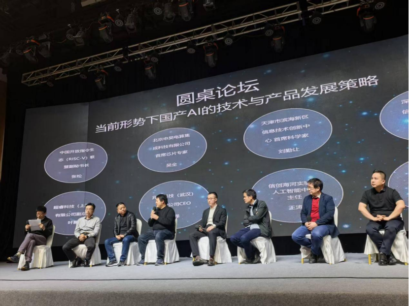 在圓桌論壇環(huán)節(jié),RISC-V副秘書長張松就國產(chǎn)AI發(fā)展和七位行業(yè)專家展開深度對(duì)話,諾亞鴻云首席科學(xué)家張彥朝指出:“AGC架構(gòu)已在國內(nèi)多個(gè)重點(diǎn)行業(yè)驗(yàn)證,推理效率提升3倍以上。”兆松科技CEO范澤分享:“我們開發(fā)的RISC-V專用編譯器可將CUDA遷移損耗控制在15%以內(nèi)。”信創(chuàng)海河實(shí)驗(yàn)室主任王濤強(qiáng)調(diào):“要通過開源協(xié)作突破技術(shù)壁壘,構(gòu)建自主可控的AI生態(tài)。”
