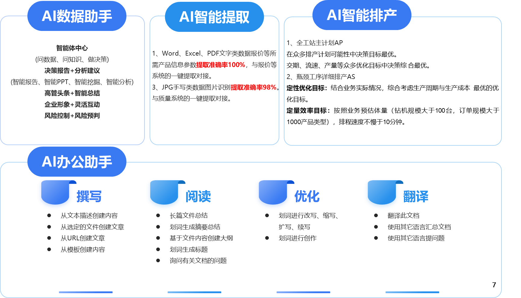 曉軟AI-iMS將先進(jìn)的AI大模型融入智造運(yùn)營(yíng)管理,使企業(yè)能夠借助機(jī)器學(xué)習(xí)、自然語(yǔ)言處理等手段,實(shí)現(xiàn)對(duì)運(yùn)維數(shù)據(jù)的深度挖掘和智能分析。例如,通過(guò)機(jī)器學(xué)習(xí)算法,系統(tǒng)可以自動(dòng)識(shí)別故障模式,預(yù)測(cè)設(shè)備的剩余使用壽命;利用自然語(yǔ)言處理技術(shù),智能客服能夠理解并解答客戶的復(fù)雜問(wèn)題。這種智能化的分析能力能夠幫助企業(yè)做出更加精準(zhǔn)的決策,提升運(yùn)維效率。