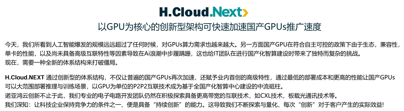 諾亞鴻云致力于構(gòu)建一套整體的人工智能基礎(chǔ)建設(shè)方案 ,CPU通算 + GPU智算一體機(jī)、通過先進(jìn)的混合算力體系。