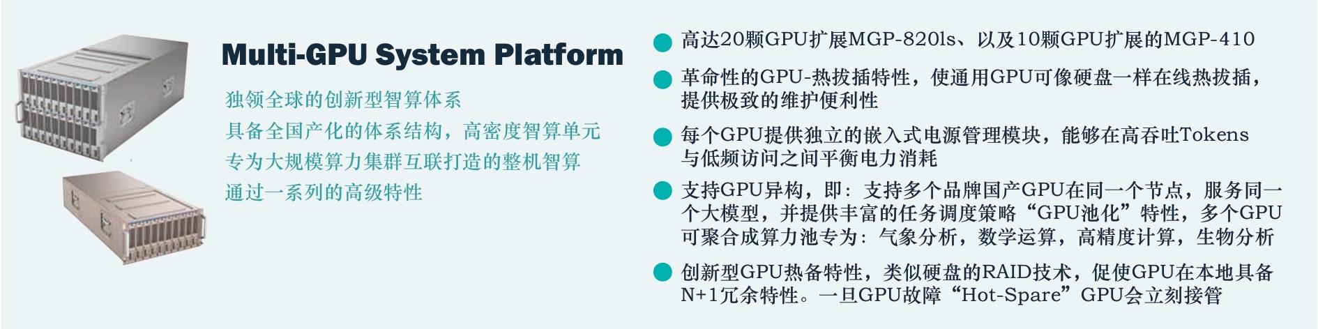 智算大模型一體機(jī)MGP-820ls(20卡)系列 (詳情請點(diǎn)擊 產(chǎn)品規(guī)格書 )
