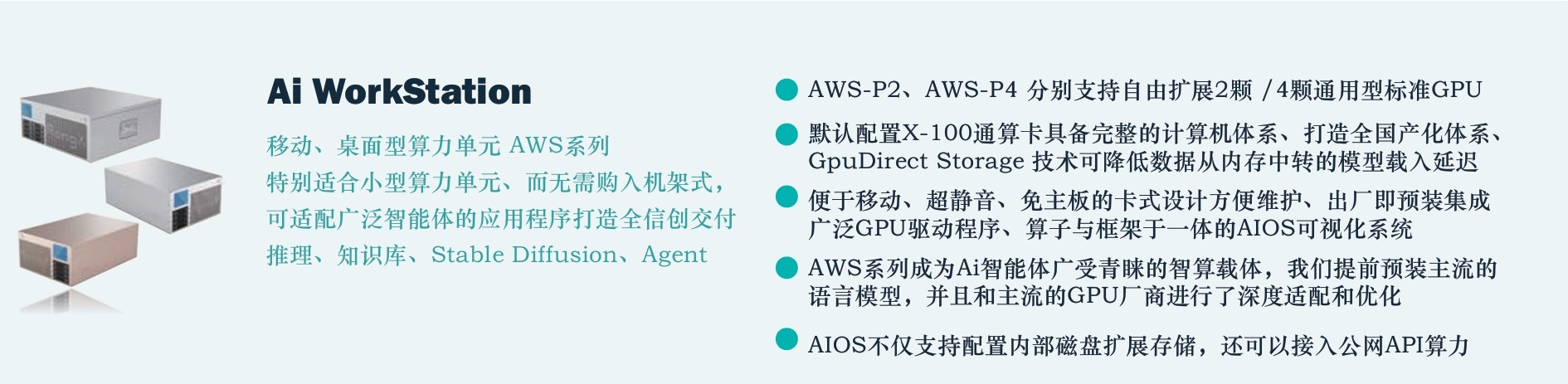 智算大模型一體機(jī)AWS-P2(2卡)、AWS-P4(4卡)系列 (詳情請點(diǎn)擊 產(chǎn)品彩頁 )
